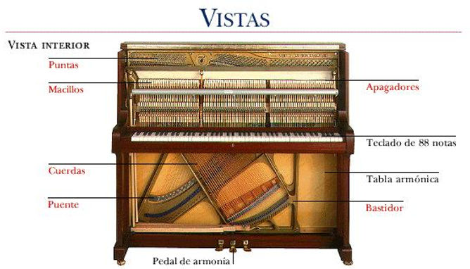 Compuesto por una caja de resonancia, a la que se ha agregado un teclado mediante el cual se percuten las cuerdas de acero con macillos forrados de fieltro, produciendo el sonido.